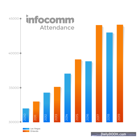 Replying to an #InfoComm19 tweet that repeated a common misconception, that Orlando attendance was typically less than that of Las Vegas, we put together this list of attendance figures going back to 2010.